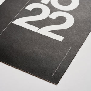 - Gesetzt in eng laufender Neue Haas Grotesk, der ursprünglichen Helvetica